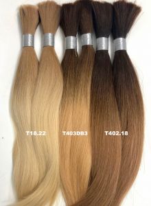 Die Extensions sind mit flachen Keratinbondings versehen und können mittels Wärmezange oder mit einem Ultraschallgerät am Eigenhaar angebracht werden. Das Remyhaar (alle Haare liegen in gleicher Wuchsrichtung) ist von sehr guter Qualität, ohne Silikone und seidig weich. Die Haare werden in unserer Fabrik schonend gefärbt und können auch in größeren Mengen bestellt werden. Zubehör wie Fingerschutz, Schablonen und Haarbürsten findet man auch in unserem Shop.