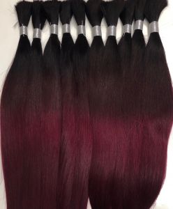Das hier angebotene ombrefarbene Haar in der Farbe 1B99 mit dem Farbeverlauf dunkelbraun-tiefdunkelrot, hat außer einer Säuberung und der schonenden Haarfärbung keine weiteren chemischen Prozesse erfahren. Dieses Haar hat die bestmögliche Qualität, für eine natürlich wirkende Haarverlängerung, an der man lange Freude hat.