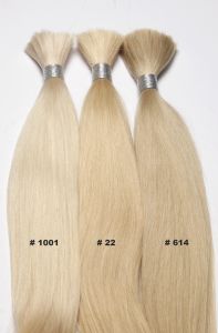 Die Extensions sind mit flachen Keratinbondings versehen und können mittels Wärmezange oder mit einem Ultraschallgerät am Eigenhaar angebracht werden. Das Remyhaar (alle Haare liegen in gleicher Wuchsrichtung) ist von sehr guter Qualität, ohne Silikone und seidig weich und füllig bis in die Spitzen. Die Haare werden in unserer Fabrik schonend gefärbt und können auch in größeren Mengen bestellt werden. Zubehör wie Fingerschutz, Schablonen und Haarbürsten findet man auch in unserem Shop.