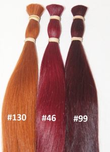 Die Extensions sind mit flachen Keratinbondings versehen und können mittels Wärmezange oder mit einem Ultraschallgerät am Eigenhaar angebracht werden. Das Remyhaar (alle Haare liegen in gleicher Wuchsrichtung) ist von sehr guter Qualität, ohne Silikone und seidig weich und füllig bis in die Spitzen. Die Haare werden in unserer Fabrik schonend gefärbt und können auch in größeren Mengen bestellt werden. Zubehör wie Fingerschutz, Schablonen und Haarbürsten findet man auch in unserem Shop.